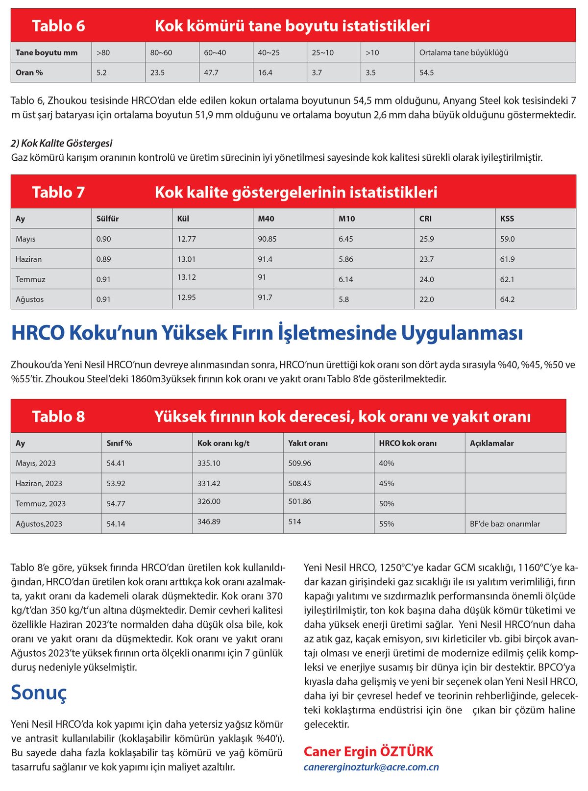 Çin’deki HRCO’nun baş tacı, yalnızca ACRE tarafından tasarlanan ve Nisan 2023’te devreye alınan Zhoukou Steel’deki Yeni Nesil HRCO’dur ve Zhoukou Steel’deki kömür harmanlama durumu Tablo 3’te gösterilmektedir.