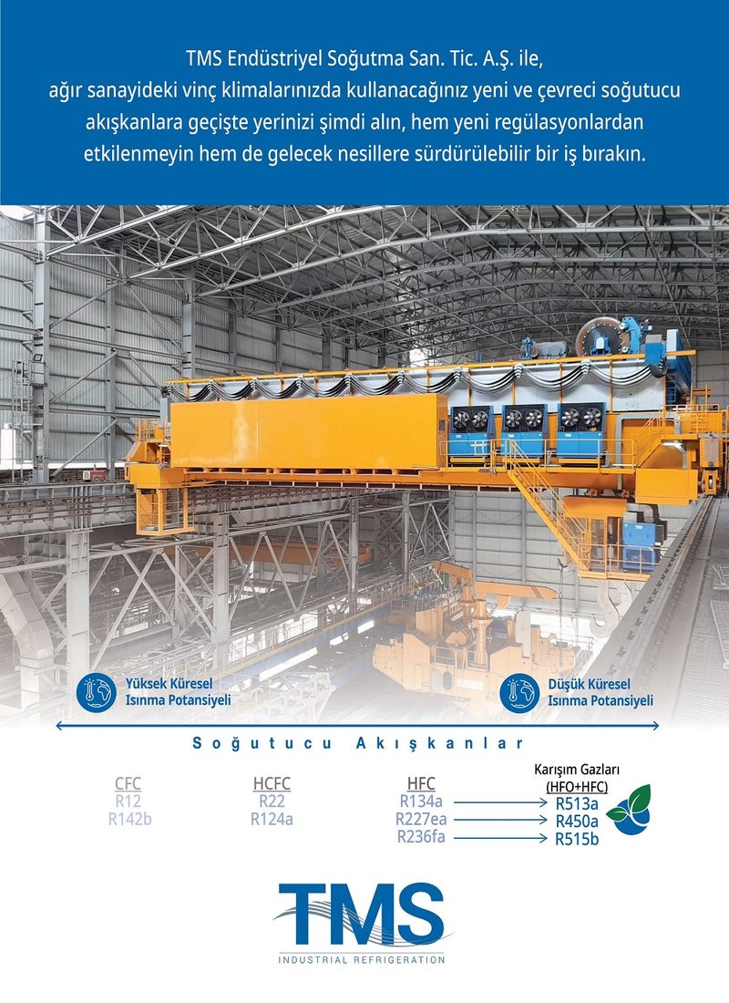 TMS Endüstriyel Soğutma A.Ş Olarak 2019 yılında başlatmış olduğumuz ARGE çalışmalarının sonucunda özellikle demir çelik tesislerinin zorlu çalışma şartlarına göre tasarlanmış olan VKS Serisi vinç kabin soğutucuları olan ürün gamımız başta olmak üzere endüstriyel alanlarda kullanılan R134a, R227ea ve R236fa soğutucu akışkanlarına alternatif olan yeni nesil düşük GWP değerine sahip akışkanlarla ilgili tasarımlar tamamlanmış ve yeni ürün gamları devreye alınmıştır.