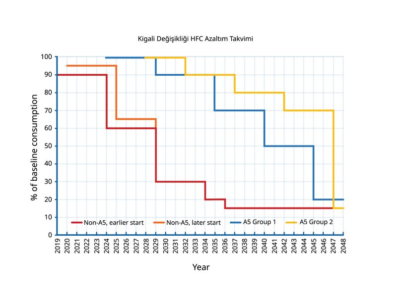 Şekil-1 Kigali Değişikliği HFC Azaltım Takvimi [2]