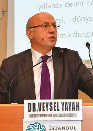 Türkiye Odalar ve Borsalar Birliği Türkiye Demir ve Demir Dışı Metaller Meclis Başkanı / TÇÜD Genel Sekreteri Dr. Veysel Yayan; yaptığı konuşmasında çelik sektörüne ilişkin birtakım değerlendirmelerde bulundu. Dr. Veysel Yayan, Çin’in çelik ürünleri ihracatının 2009 yılından itibaren sürekli büyüdüğünü belirterek şunları söyledi: “Yıllar itibariyle bu büyüme belli oranlarda başladı ve gözardı edilemeyecek bir ortalamayla devam ediyor. Netice itibariyle 2009 yılında dünya piyasalarına 25 milyon ton ihracat yapan Çin, 2014 yılında 100 milyon tona yaklaştı. Yaklaşık 4 misli civarında bir ihracat artışı var.