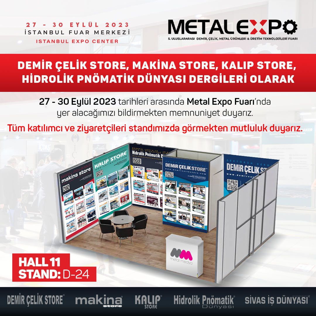 Metal Medya Grubu olarak bizde DEMİR ÇELİK STORE, MAKİNA STORE, KALIP STORE VE HİDROLİK PNÖMATİK DÜNYASI dergilerimizle Hall 11 Stand D24'de siz değerli okuyucularımızla buluşmaktan mutluluk duyarız.