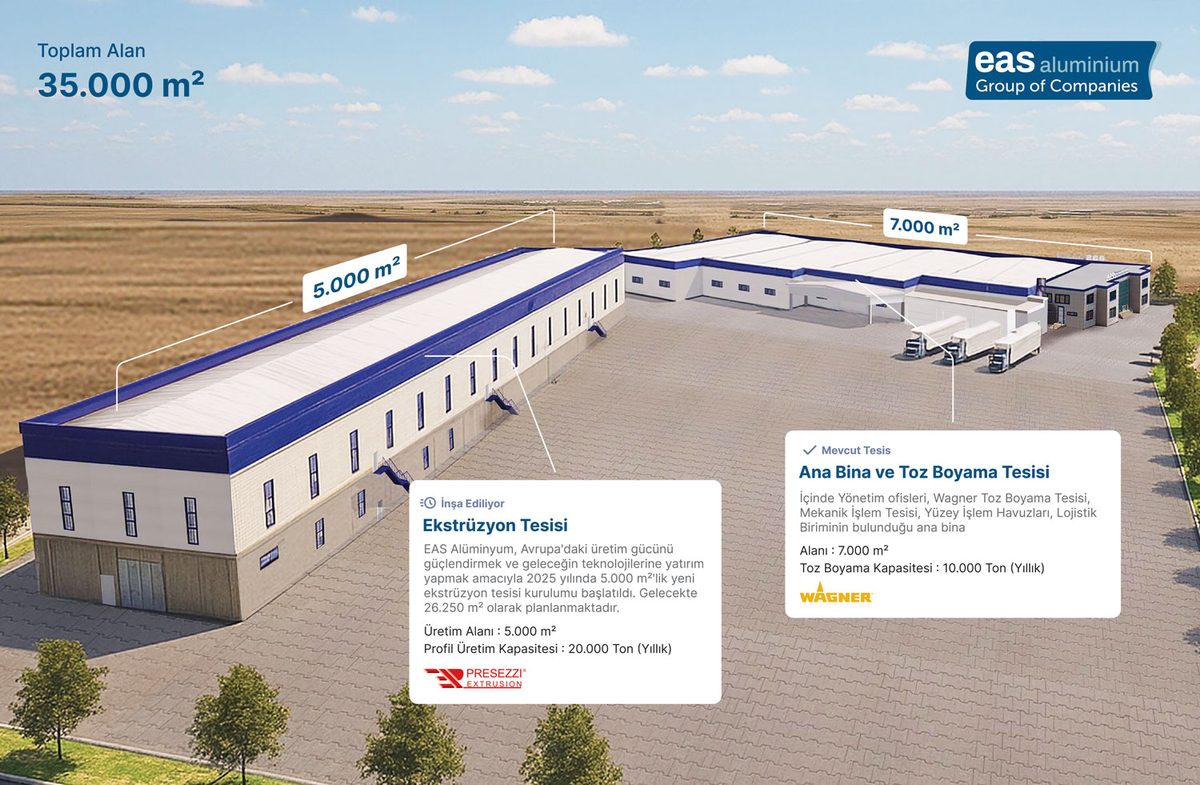 Uzun vadeli büyüme stratejisinin bir parçası olarak EAS Aluminium, Edirne Organize Sanayi Bölgesi’nde 35 bin metrekarelik yeni ekstrüzyon tesisinin inşasına başladı. Bu stratejik yatırım, EAS’in Avrupa’daki operasyonlarında yeni bir dönemin başlangıcını simgeliyor. Yatırımla birlikte üretim kapasitesi artırılacak, operasyonel verimlilik geliştirilecek ve çevresel sürdürülebilirlikte yeni bir seviye hedeflenecek.