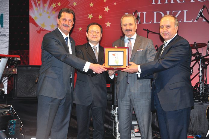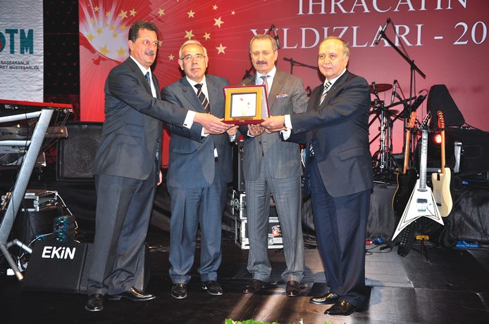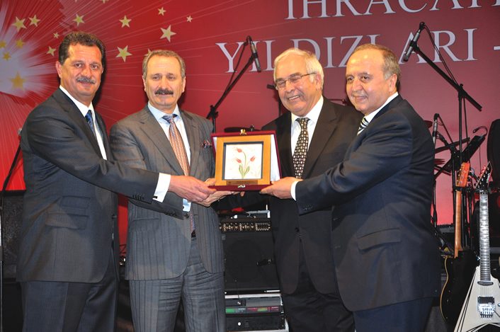 Fotolu: 2010 yılında Ege İhracatçı Birlikleri’nden imalatçı-ihracatçı bazında en fazla ihracat gerçekleştiren İzmir Demir Çelik Sanayi ve Ticaret A.Ş. Yönetim Kurulu Başkanı Halil Şahin’e ödülünü Ege İhracatçı Birlikleri Koordinatör Başkanı Mustafa Türkmenoğu, Devlet Bakanı Zafer Çağlayan ve TİM Başkan Vekili Mustafa Çıkrıkçıoğlu birlikte verdi.