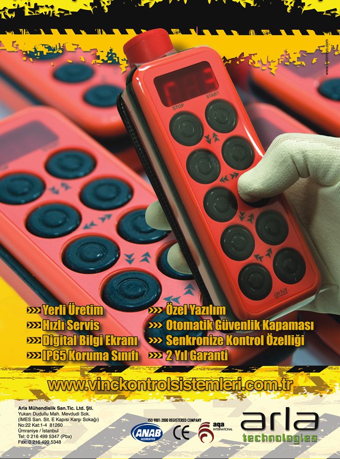 Kısa vadede hayata geçirmek istediğimiz şey, şu an üç bölgede olan bayilik sayımızı 6 ‘ya çıkarmak. Uzun vadede ise Türkiye’de üretilip satılan tüm vinçlerin yerli Arla ürünü kablosuz kumandasıyla birlikte satılmasını sağlamak… Son olarak şunları dile getirmek istiyorum: Uzakdoğu veya herhangi bir ülkeden getirip bir şeyler satmak çok kolay. Fakat ülkemizde Ar-Ge hatta teknolojik Ar-Ge yapılıyor olması teknolojide dışarıya bağımlılığımızı azaltmak açısından çok önemli. Teknolojik Ar-Ge’nin yapılıyor olması ülkemiz için bir güçtür ve yapılması gerekenlerden biridir. Ar-Ge’nin her zaman devlet politikaları olarak desteklenmesi gerekir. Tüketen değil üreten bir toplum olmamız gerektiğini ve bu bilincin yaygınlaştırılması gerektiğine inanıyorum.