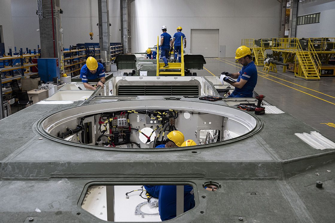 Anadolu Ajansı, BMC’nin Ankara Uzay ve Havacılık İhtisas Organize Sanayi Bölgesi’ndeki (HAB) tesisinde ALTAY’ın ham çelikten muharebe aracına uzanan üretim sürecini ilk kez içeriden görüntüledi. Yerli endüstriyel robotların ve yeni nesil üretim teknolojilerinin kullanıldığı hatta, gövde imalatından son montaja kadar tüm süreçler izlenebilirlik ve kalite güvence zinciriyle kurgulandı. Kısa sürede inşa edilip devreye alınan kompleks, hem BMC Savunma’nın ALTAY üretimine hem de BMC Power’ın BATU güç grubunun geliştirilmesine ev sahipliği yapıyor.