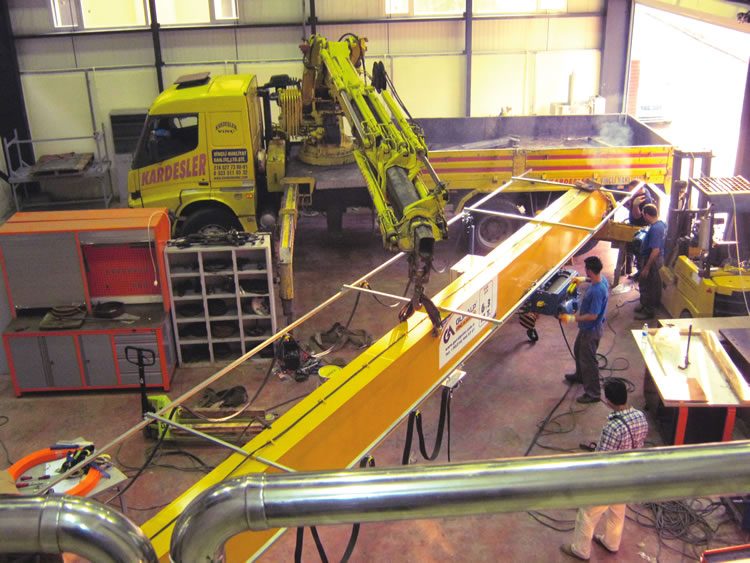 Konuyla ilgili olarak görüşlerine başvurduğumuz Güralp Vinç İstanbul Bölge Müdürü Mehmet Yıkılmaz, firma olarak eğitime küçük bir katkı yaptıklarını ve bundan son derece mutluluk duyduklarını dile getirerek sözlerini sürdürdü: “ İlk olarak İMDER (Türkiye İş Makinaları Distribütörleri Ve İmalatçıları Birliği)’in bir organizasyonunda okulumuzun böyle bir ihtiyacının olduğunu öğrendik ve seve seve bu görevi üstlenebileceğimizi dile getirdik. 6.3 M.T kapasiteli, 13 metre açıklığı, 18 metre bina derinliği olan bir alana kurduğumuz vincimiz, günümüz teknolojisine uygun olarak imal edildi. Güralp Vinç olarak, bundan sonraki dönemlerde de üstümüze düşen bir görev olursa elimizden geldiğince yerine getirmeye çalışacağız.” Mehmet Yıkılmaz ve Ali Durgud vincin kurulu olduğu binayı inceledikten sonra okul yönetimi tarafından verilen öğle yemeğine katıldı.