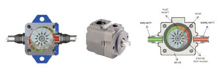 Paletli pompalar: Değişken deplasmanlı(2) paletli pompalar 100 basınca kadar çıkabilirken, sabir deplasmanlı tipleri 150 basınçlara kadar çıkabilir.