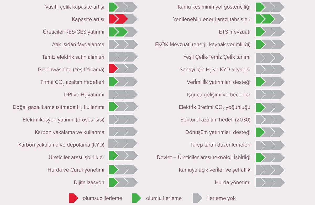 4. Çelik sektörünün karbonsuzlaşmasını yönlendirecek somut, ölçülebilir ve bağlayıcı çevre, enerji ve iklim politikası düzenlemeleri geliştirilememiştir.