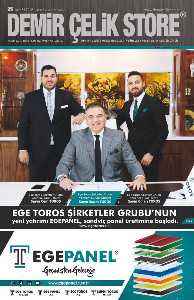 Yönetim Kurulu Başkanımız Sayın Suphi Toros tarafından 1996 yılında 100 metrekare alanda kurulan Toroslar Boru Profil, 2021 yılında Ege Toros Şirketler Grubu olarak 36 ülkeye ihracat yapan dev bir şirkete dönüştü. Ortadoğu ve Avrupa'nın en uzun sandviç panel üretim hattı olan Ege Panel’i kurarak İzmir'e haklı bir gurur yaşatan firmamız, sektörde büyümesini çok müşteri az kâr prensibiyle sürdürüyor. Yönetim Kurulu Başkanımız Suphi Toros'un tırnaklarıyla kazıya kazıya kurduğu şirketler grubunun geleceği, eğitimlerimizi tamamladıktan sonra şirket yönetimde söz sahibi olmamıza tanıdığı imkanla, emin ellerde.