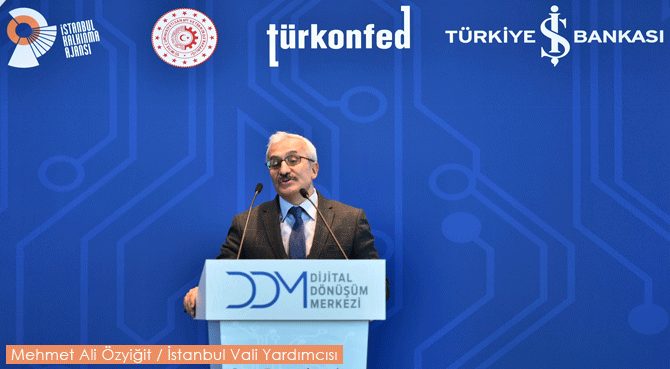 Konuşmasında, yaşanan dijitalleşme yarışında henüz ülkelerin rekabetin nereye varacağını kestiremediğini belirten İstanbul Vali Yardımcısı Mehmet Ali Özyiğit, “Yaşanan değişim ve dönüşüm sürecinde, küresel rekabetçilikte rakiplerinin bir adım önüne geçenler, yarının söz sahibi olacak” dedi. Özyiğit, ekonominin bel kemiği olan KOBİ’lerin, Türkiye’nin geleceği adına insan kaynağından üretim araçlarına, pek çok alanda desteklenmesi gerektiğini vurgulayarak, şöyle konuştu: “Dijital dönüşüm her anlamda desteklenmesi gereken önemli bir süreçtir. Dijital dönüşümü, ülkemizin geleceği için çok önemsiyoruz çünkü bu projenin, sadece KOBİ’lerin değil, Türkiye’nin geleceği adına çok önemli olduğunu düşünüyoruz. Umarız proje başarılı olur ve Türkiye, hak ettiği yerde olur.”