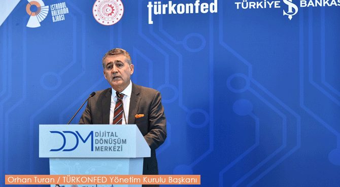 “Türkiye’nin sürdürülebilir kalkınması için ekonomimizin rekabetçilik gücünü artırmamız şart. Dolayısıyla sektörlerimiz, işletmelerimiz ve özellikle ekonominin can damarı olan KOBİ’lerimizin rekabetçilik gücünü geliştirmeye odaklanmak gerekiyor” diyen TÜRKONFED Yönetim Kurulu Başkanı Orhan Turan, açılışta yaptığı konuşmada şunları söyledi: “Artık üretim ve sanayi; dijitalleşme çerçevesinde şekilleniyor. Bu nedenle, teknolojiyi tüketen değil; hayal eden, araştıran, geliştiren, üreten ve ihraç eden bir ülke olmalıyız. Yüksek teknolojili üretim yaparak, yüksek katma değer yaratmak ve küresel rekabet gücümüzü artırmak için dijitalleşme, aradığımız kaldıraçtır. Sanayimizin dijital dönüşümünü gerçekleştirip, KOBİ’lerimizin kapasitelerini artırıp, yüksek teknolojiyle yüksek katma değerli üretimi yakalayıp, ekonomik refahı artırabiliriz. Teknolojik altyapı yatırımlarının faydaya dönüşebilmesi, ancak KOBİ’lerin dijital dönüşümü, kurumsal yapılarının bir parçası haline getirmesiyle mümkün görünüyor. Bu amacı gerçekleştirmek için KOBİ’lerimizin dijitalleşme yolculuğuna destek olacak Dijital Dönüşüm Merkezi, başarılı örneklerin ortaya çıkmasını sağlayacak, sürdürülebilir mekânsal bir platform imkânı da sunuyor. Merkez ile dijitalleşme becerilerinde yetkinlik kazanacak KOBİ’lerimizin, çarpan etkisi yaratarak, İstanbul’un yenilik iklimine katma değer yaratmasını da hedefliyoruz. Bu proje ile finansmana erişimden pazara açılmaya kadar KOBİ’lerimizin yenilik üretme motivasyonlarını artıracağız.”