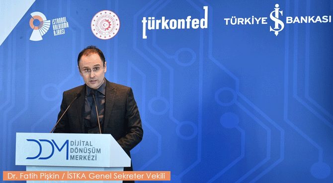 Dijital Dönüşüm Merkezi Projesi ile KOBİ’lerimize dijital çağın gerektirdiği vizyon ve yetkinlikleri kazandırmayı hedeflediklerini ifade eden İSTKA Genel Sekreter Vekili Dr. Fatih Pişkin, İstanbul’un ekonomik gücünün korunmasında KOBİ’lerin önemli bir işlev üstlendiğine vurgu yaptı. Dr. Fatih Pişkin, konuşmasında şunları aktardı: “KOBİ’lerimiz İstanbul’un ekonomik gücünün korunması bakımından önemli bir işlev üstleniyor. İstanbul ekonomisinin mevcut yapısının ileri teknoloji kullanan, yüksek katma değer üreten, nitelikli iş gücü istihdam eden, bilgi yoğun bir üretim yapısına dönüştürülmesi için KOBİ’lerimizin mevcut yapılarını da çağın gerçeklerine uygun olarak dönüştürmek mecburiyetindeyiz. İstanbul Kalkınma Ajansı olarak 2010 yılından bu yana 10 destek programında doğrudan KOBİ’lere yönelik toplam 114 projeye destek vermiş bulunuyoruz. Güdümlü projelerimiz ile de KOBİ’lerin test ve prototip üretme ihtiyaçlarını karşılıyoruz. Girişimcilik alanında verdiğimiz destekler de doğrudan KOBİ’lerimizi etkiliyor. ‘KOBİ’ler Gelecekle Buluşuyor: Dijital Dönüşüm Merkezi’ projemizi de KOBİ’lerimizin üretim, iç yönetim, pazarlama ve satış alanlarında dijital dönüşüm süreçlerine katkıda bulunmak amacıyla desteklemiş bulunuyoruz. Bu projemizle, KOBİ’lerimize dijital çağın gerektirdiği vizyon ve yetkinliklerin kazandırılmasını hedefliyoruz.”