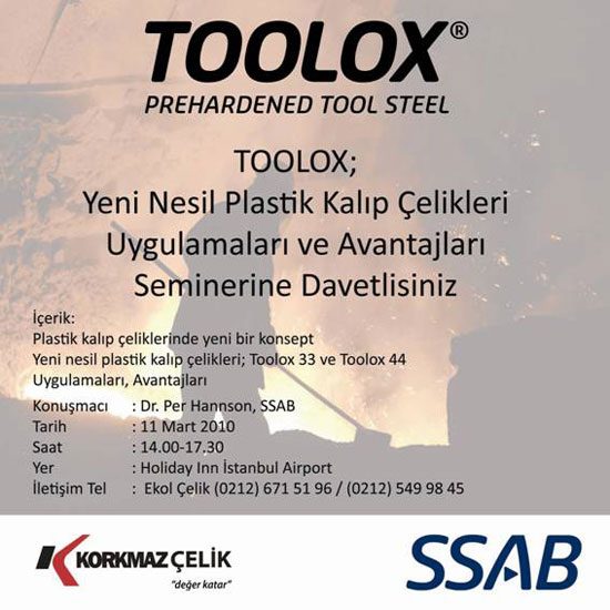 KORKMAZ ÇELİK tarafından TOOLOX Yeni Nesil Plastik KalIp Çelikleri Uygulamaları ve Avantajları Semineri Düzenliyor.