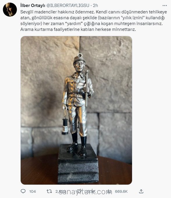 Tarihçi Prof. Dr. İlber Ortaylı ise “Sevgili madenciler hakkınız ödenmez. Kendi canını düşünmeden tehlikeye atan, gönüllülük esasına dayalı şekilde (bazılarının "yıllık iznini" kullandığı söyleniyor) her zaman “yardım” çığlığına koşan muhteşem insanlarsınız. Arama kurtarma faaliyetlerine katılan herkese minnettarız.” Yorumunda bulundu.