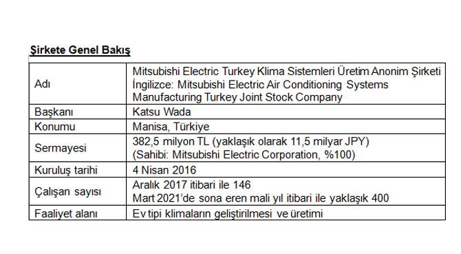 Mitsubishi Electric Corporation, Mitsubishi Electric Turkey Klima Sistemleri Üretim Anonim Şirketi tarafından ev tipi klimaların geliştirilmesi ve üretimi için Türkiye’de kurulan yeni fabrikanın 12 Aralık’ta üretime başlayacağını açıkladı.