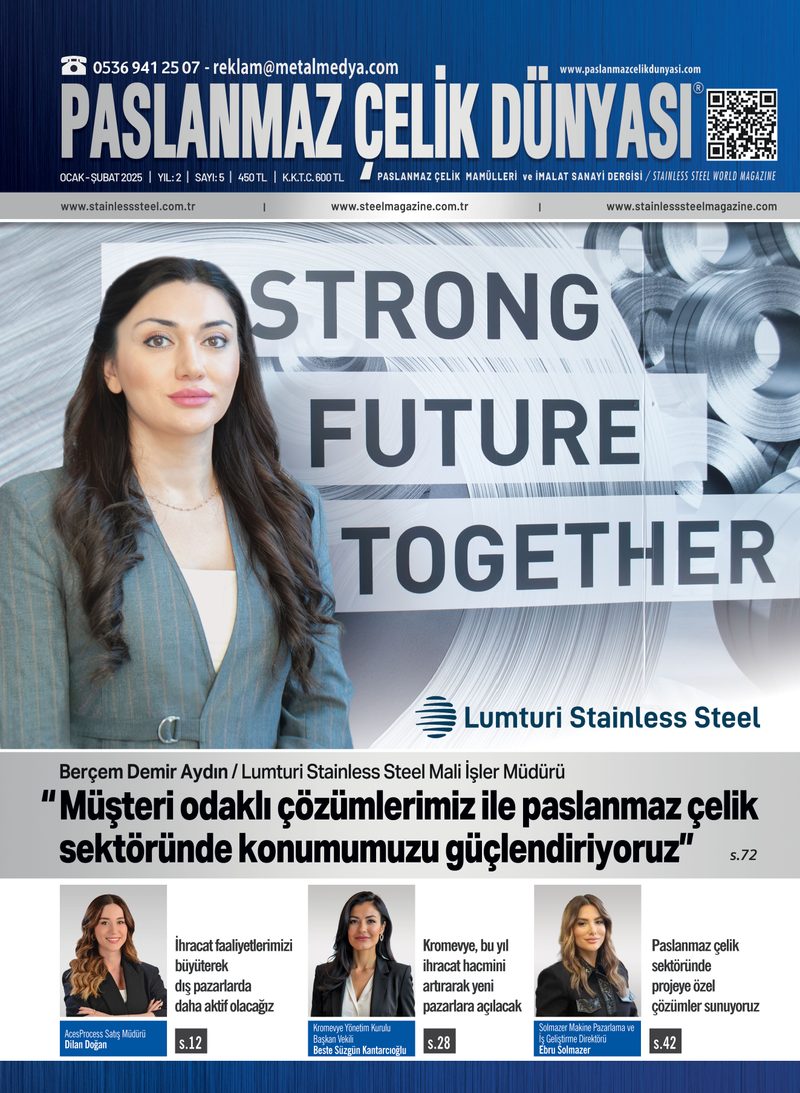 Paslanmaz çelik faaliyetlerine 2018 yılında başlayan Lumturi Stainless Steel, Slovakya merkezli bir şirket olarak faaliyetlerini sürdürüyor. Lumturi Long Products ve Lumturi Logistics & Warehousing gibi markalarıyla da lojistik, depolama ve nakliye alanlarında çözümler sunan firmanın Mali İşler Müdürü Berçem Demir Aydın, paslanmaz çelik sektörüyle ilgili görüşlerini Paslanmaz Çelik Dünyası’nda açıkladı. Berçem Demir Aydın, şirketin 2025 ve geleceğe dair planlarının yanı sıra dijital dönüşüm ve çevre dostu üretime yönelik atılımlarından da söz etti.