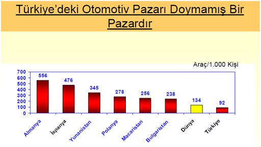 Bugün Avrupa ülkelerinin otomotiv ürünleri ticareti ağırlıklı olarak kendi aralarında yapılıyor. Örneğin Almanya’nın toplam ithalatının 72’si AB ülkelerinden yapılıyor. Avrupa piyasasındaki en büyük üretici beş ülke Almanya, Fransa, İngiltere, İspanya ve İtalya toplam Avrupa otomotiv sanayi üretiminin 69’unu gerçekleştiriyor. Özellikle hızla küreselleşmekte olan bu sektörde rekabet büyük yoğunluk kazanmakta ve sanayileşmiş ülkeler AB, NAFTA gibi ekonomik birliklerde bu sektörün korunması ve rekabet gücünün geliştirilmesi için özel politikalar uygulanmaktadır. Dünya serbest ticaret kuralları hiçe sayılarak, otomotiv sanayiine “siyaset” karıştırılmakta ve bazı hükümetler, doğrudan şirket kararlarına müdahale edebilmektedir.
