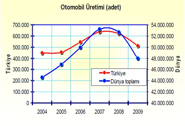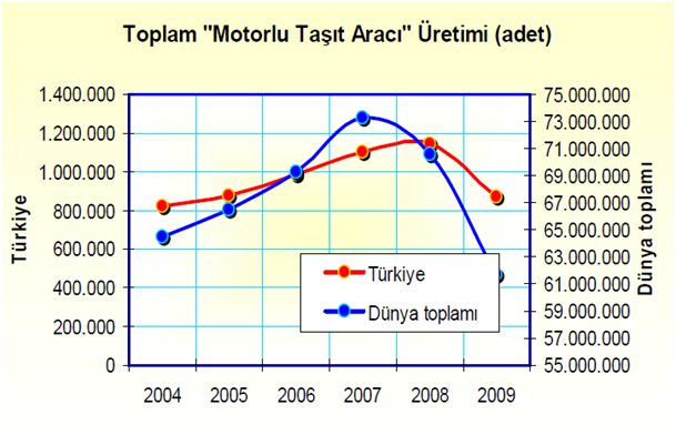 Türkiye; dünya otomotiv üretiminde, 2008'de 15. sıradayken, geçen yıl 17. sıraya düştü. Avrupa Birliği içindeyse, 5. sıradan 7. sıraya geriledi. Geçen yıl yine, Avrupa Birliği içinde; hafif ticari araç üretiminde ilk sırada, Otobüste 2. , Binek otomobilde 8., Kamyon üretiminde de 9. Sırada yer aldı. G20 ülkeleri içinde kendi otomotiv markası olmayan tek ülke Türkiye