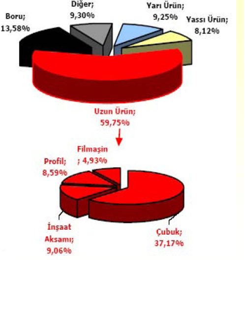 Uzun Ürünler 85, İnşaat Sektörü 83, Özel (vasıflı)Çelik 2, Yassı Ürünler 15