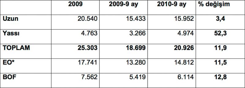 Ocak-Eylül döneminde, elektrik ark ocaklarında gerçekleştirilen ham çelik üretimi 11.5 oranında artışla, 13.28 milyon tondan, 14.8 milyon tona ulaşırken, entegre tesislerin üretimi 5 12.8 oranında artışla, 5.42 milyon tondan, 6.11 milyon tona çıktı. Entegre tesislerin toplam ham çelik üretimi içerisindeki payı ise, 29.2 seviyesinde gerçekleşti.
