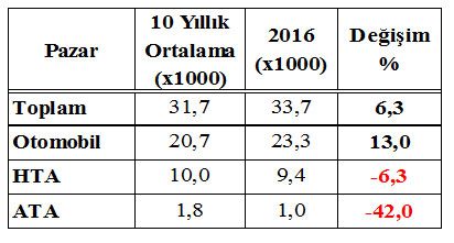 Son 10 yıllık ortalamalara göre toplam pazar yüzde 6,3 ,otomobil pazarı yüzde 13 oranında artarken, hafif ticari araç pazarı yüzde 6,3 ağır ticari araç pazarı ise yüzde 42 oranında düşüş gösterdi.