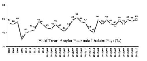 - Öte yandan 2016 yılı Ekim ayında ithal hafif ticari araçların pazar payı yüzde 49 düzeyinde gerçekleşti.
