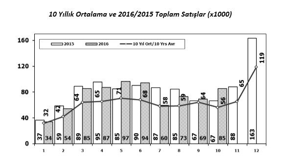 • 2016 yılı Ocak-Ekim döneminde toplam satışlar 738 bin adet seviyesinde gerçekleşti ve 2015 yılı aynı dönemine göre yüzde 3 oranında azaldı.
