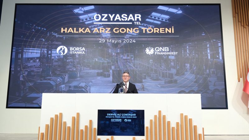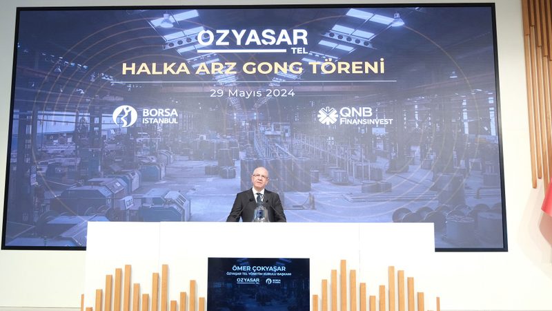 Borsa İstanbul’da gong, Türkiye’nin çelik tel sektörünün önde gelen oyuncularından Özyaşar Tel için çaldı. 23-24 Mayıs 2024 tarihlerinde gerçekleşen talep toplama sürecini tamamlayan şirket, 29 Mayıs 2024 tarihi itibarıyla Borsa İstanbul’da “OZYSR" koduyla işlem görmeye başladı. Borsa İstanbul’da düzenlenen Özyaşar Tel gong töreni, Borsa İstanbul A.Ş. Genel Müdürü Korkmaz Ergun, Özyaşar Tel ve Galvanizleme San. A.Ş. Yönetim Kurulu Başkanı Ömer Çokyaşar, Özyaşar Tel ve Galvanizleme San. A.Ş. Yönetim Kurulu Başkan Vekili Derviş Ali Çokyaşar, Özyaşar Tel ve Galvanizleme San. A.Ş. Bağımsız Yönetim Kurulu Üyesi Ümit Bozer, Özyaşar Tel ve Galvanizleme San. A.Ş. Yönetim Kurulu Üyesi Murat Tanrıöver, Özyaşar Tel ve Galvanizleme San. A.Ş. Bağımsız Yönetim Kurulu Üyesi Ahmet Fatih Tamay, Çokyaşar Holding Genel Müdürü Erman Korkusuz, Çokyaşar Holding Mali İşler Genel Müdür Yardımcısı Sıtkı Serdar GİRAL, QNB Finansbank Yönetim Kurulu Başkanı Ömer Aras, QNB Finans Yatırım Menkul Değerler A.Ş. Genel Müdürü ve Yönetim Kurulu Üyesi Esen Pamir Karagöz, QNB Finans Yatırım Menkul Değerler A.Ş. Genel Müdür Yardımcısı İpek Hekimoğluve davetlilerin katılımıyla gerçekleşti.