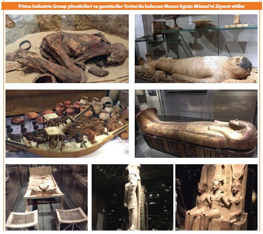 Bu sebeple Türkiye’de bu konuya önem veren tüm firmalar tarafından öncelikli olarak tercih ediliyoruz. Yüksek teknolojik özelliklerinin yanı sıra Düşük Bakım Giderleri, Düşük Operasyon Giderleri ve Enerji Tasarrufu sağlaması sebebiyle Prima Power ürünleri rakiplerinin daima 1 adım önünde yer alıyor. İlave olarak Türkiye’de sahip olduğumuz yaygın ve hızlı servis ağı, geniş yedek parça stoku ve doğru yürütülen müşteri ilişkileri anlayışı sayesinde her geçen gün büyüyor ve gelişiyoruz.” Organizasyonun bitiminde gazetecilere Torino’da bulunan Museo Egizio adlı müze gezdirildi. Mısır uygarlıklarının eserlerinden oluşan müzede Firavunlara ait heykeller, çeşitli eşyalar ve mumyalar sergileniyor. Müze ziyaretinin ardından verilen akşam yemeğiyle birlikte program sona erdi.