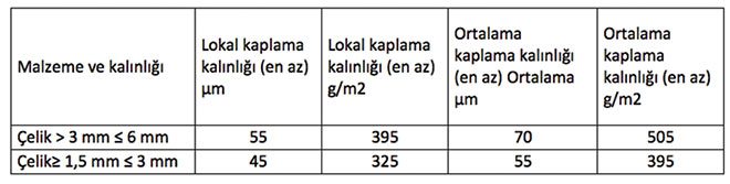 Tablo-1: Topraklama şeritleri kaplama kalınlıkları (TSE EN ISO 1461)