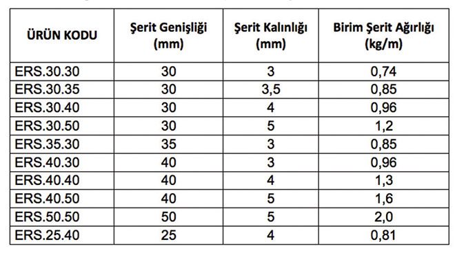 Tablo-2: Erdoğan Metal Standart Topraklama Şerit Ebatları