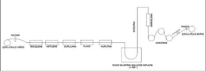 Şekil-1: Sürekli tip Topraklama Şerit Hattı Proses Şeması