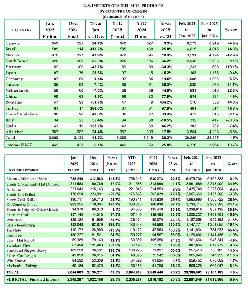 ABD’nin uyguladığı korumacı önlemler neticesinde Türk çeliği, ABD pazarındaki konumunu büyük ölçüde kaybetmiştir. 2017’de ABD’nin en büyük 6-7 tedarikçisinden biri olan Türkiye, 2018’de %2,6 pazar payına düşmüş ve günümüzde %2 seviyesinin de altına gerilemiştir. Amerikan Demir ve Çelik Enstitüsü (AISI) verilerine göre 2024 yılında ABD’nin çelik ithalatının yaklaşık %1-2’lik kısmı Türkiye menşeli ürünlerden oluştu. Bu oran, Türkiye’yi ABD’nin en büyük ilk 10 çelik tedarikçisi listesinin dışında bırakmaktadır. Örneğin 2025 Ocak ayı itibarıyla Kanada, Brezilya, Meksika ve Güney Kore ABD’ye çelik sevkiyatında başı çekerken, Türkiye ancak 10-15. sıralarda kendine yer bulabilmektedir.