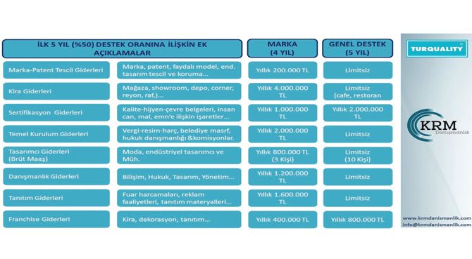 • Turquality ana program 5+5 yıllık süre ile desteklerin sınırsız olduğu program
