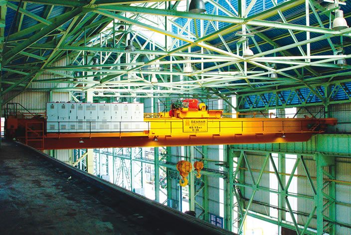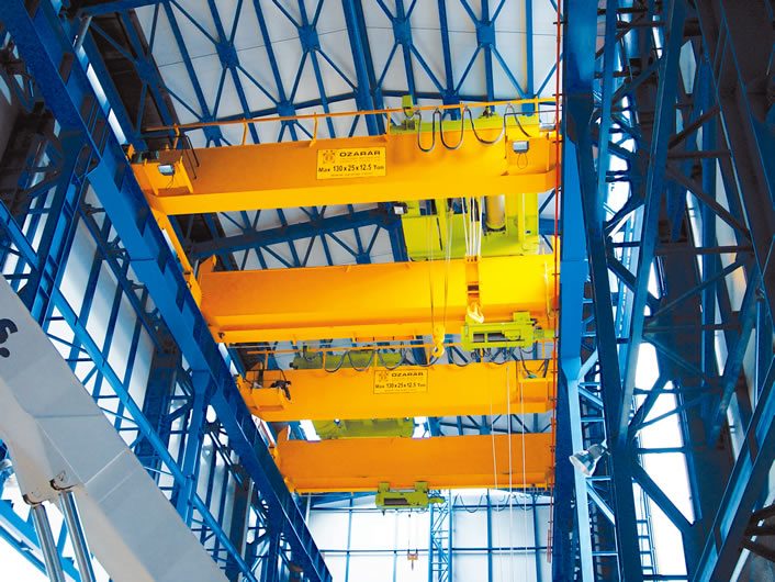 Ağırlıklı olarak üretimini yapmış olduğunuz vinçler hangi sektörlerde kullanılıyor? Yurt içi referanslarınızdan bazılarını bizimle paylaşır mısınız? Sektörde en çok rağbet gören ürünümüz çift kirişli gezer köprülü vinç dir. Çift kirişli gezer köprülü vinçler, yüksek kaldırma kapasiteleri ve ağır kullanım şartları için ideal çözümdür. Güçlü yapısı ve kompakt tasarımı sayesinde diğer kaldırma ekipmanları ile karşılaştırıldığında daha ekonomiklerdir. Özarar çift kirişli gezer köprülü vinçleri, geniş bir müşteri istek yelpazesini hızlı, verimli ve kaliteli bir şekilde karşılayabilmek için standart üretim kapasitesi olarak 100 ton'a kadar olan talepleri seri şekilde üretmektedir. Ağır hizmet sınıfı uygulamalar için çift kirişli gezer köprülü vinçler açık arabalı olarakta dizayn edilebilirler. Eğer kaldırılacak yükün büyük bir bölümü ana kaldırma kapasitesinden az ise daha hızlı bir yardımcı kaldırma ünitesi aynı araba üzerine eklenebilir.