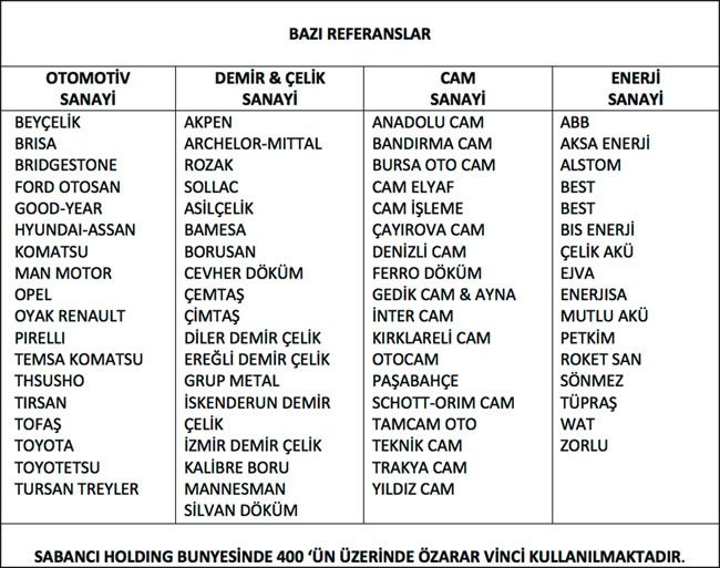 53 yıllık süreç de Özarar vinçlerini tercih eden demir-çelik firmalarına; İskenderun demir çelik, Ereğli demir çelik, Diler demir çelik, İzmir demir çelik, Bamesa, Borusan, Cevher Döküm, Çimtaş, Mannesman, Arcelor Mittal, Asil Çelik ve Grup Metal’e teşekkürü bir borç biliriz.