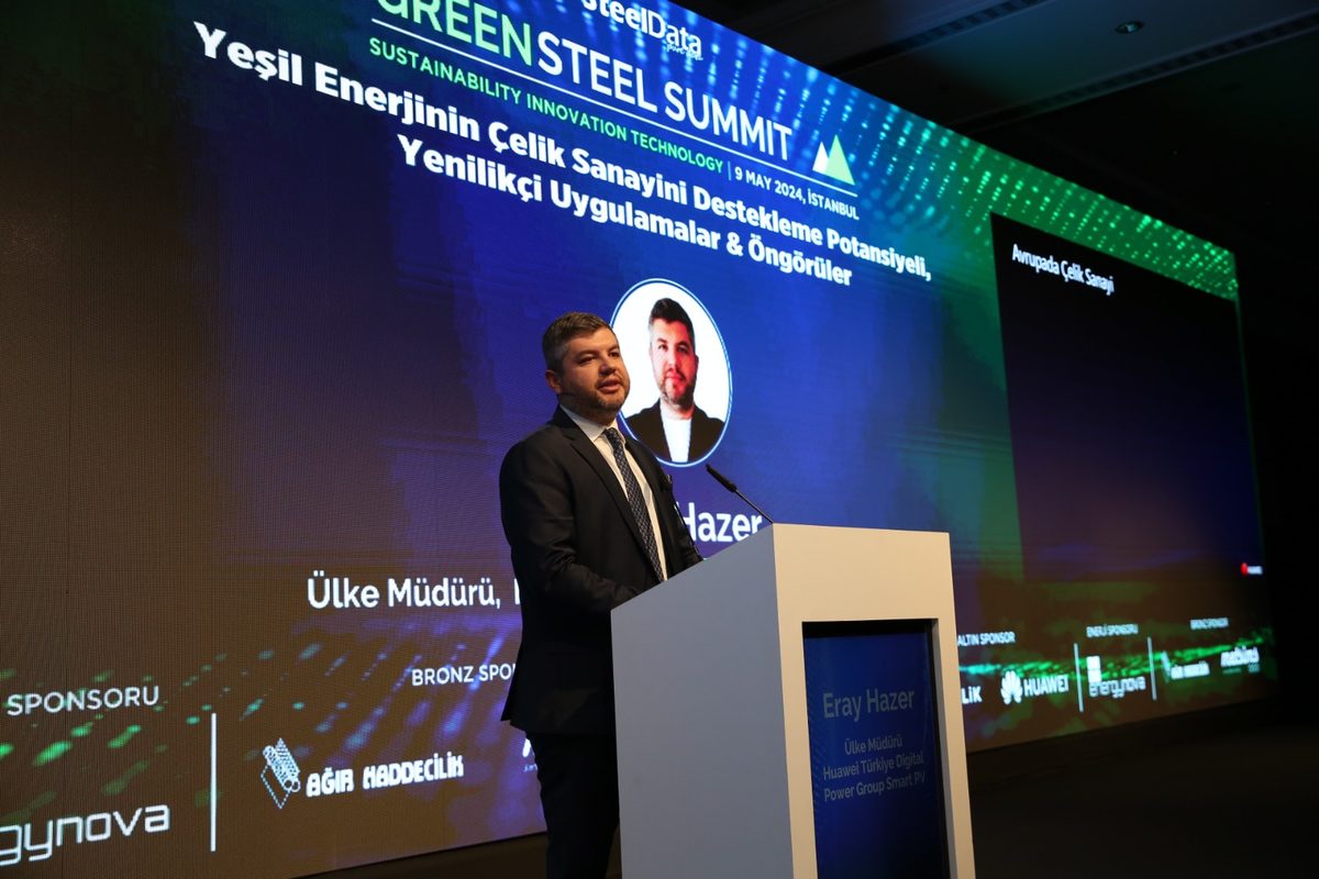 Huawei Smart PV Türkiye Ülke Müdürü Eray Hazer ise SteelData organizasyonu ile 9 Mayıs 2024 tarihinde gerçekleştirilen “Yeşil Çelik Zirvesi – Green Steel Summit 2024”te, “Yeşil Enerjinin Çelik Sanayini Destekleme Potansiyeli, Yenilikçi Uygulamalar & Öneriler” konusunda bir konuşma yaptı. Dünyanın yapı taşlarından biri olan çelik sektörünün 1.9 milyar ton çelik üretiminin 1 milyar tonunu Çin’in gerçekleştirdiğini hatırlatan Eray Hazer, “Avrupa 2027 yılında karbon vergisi uygulamaya başlayacağını duyurdu. Bu yüzden artık sıfır karbon salımı olan temiz kaynaklardan üretim yapmak gerekiyor. Türkiye genel ihracatını AB’ye yaptığı için AB’nin getirdiği şartları bizim de uygulamamız gerekiyor. Güneş ve rüzgar enerjisinin pek çok üreticimizin ihtiyacını karşılamayacağı aşikar. Onun için bunun üzerine belki de ülke olarak eğilmemiz gerekiyor. Çünkü 2027’ye fazla zaman kalmadı. Güneş ve Rüzgar enerjisine yatırımların yoğun bir şekilde devam ettiğini belirten Hazer, ancak bu yatırımlar ve kaynaklar çelik sektörünün tüm talebini karşılayabilecek düzeyde değil. Hesaplamalarımıza göre, hidrojenin ve sonrasında nükleerin bile konuşulması gerekiyor.” dedi.
