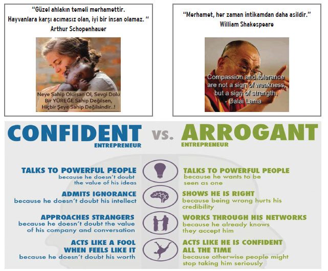 Sonra halkın içinde, onlardan biri gibi… Avrupa da çoğu lider ya da yöneticiyi halkın arasında, toplu taşıma araçlarında, bisiklet sürerken, sıradan araçlarla gezerken, alışveriş yaparken görmek mümkündür mesela. Sahi, şirketinizdeçalışan çaycının ya da güvenlik görevlisinin kaç çocuğu olduğunu nerde oturduğunu biliyor muydunuz? Gandi dünyanın doğusunun bir armağanı… Kendi giysisini kendi yıkayan, bir lokma ile günü geçiren, sadelik ve mütevazılığın simgesi. Ama onun bu sadelik ve mütevazılığını batı daha çok örnek almış görünüyor. Amerika ve Avrupa’nın toplumsal yapıları ve iş dünyası bunu yaşıyor. Yakın doğu ülkeler de ise maalesef otokratik liderlik – yöneticilik anlayışı hakim. Bu tarz da lider, gerekli yönlendirmeleri yaptığından, çalışanların ya da izleyenlerin herhangi bir becerisinin olmaması sorun yaratmaz. Cenap Şehabettin’ in şu sözleri durumu özetliyor;’ Meşe gölgesinde filizlenen yosunlar, çok kere kendilerini meşe fidanı sanırlar.’ Otoriter liderliğin bir başka sakıncası, liderin çok katı olması nedeniyle motivasyon düşüklüğü yaşanmasıdır. Dolayısıyla izleyicilerinin /çalışanların verimi düşük olabilir. Dünyaya armağan sadelik ve tevazu simgesi bir ulu çınar da bu topraklarda yetişmiştir; Mevlana Celaleddin-i Rumi . O şöyle tanımlar kibiri: